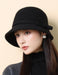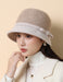 フェルト調の暖かみのある素材と、サイドの控えめなリボンが上品さを演出。