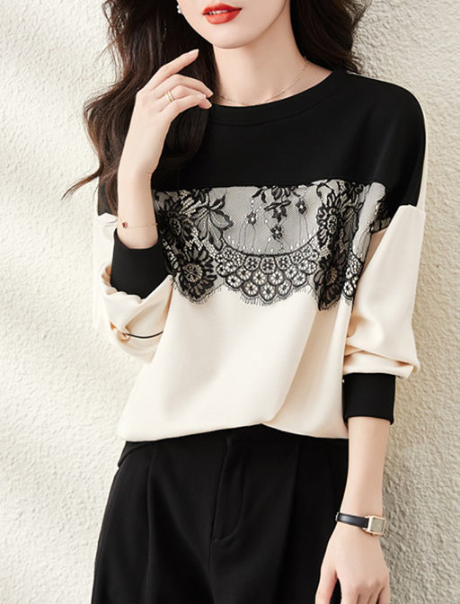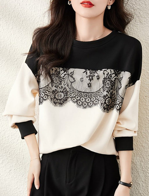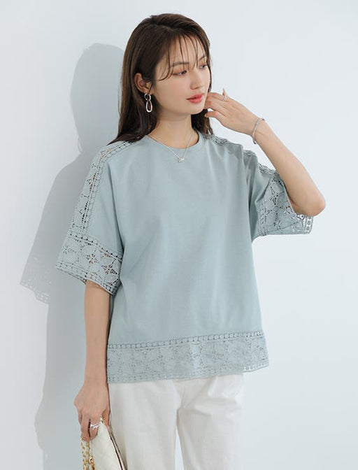 いつものスタイルに華やぎをプラス。一枚で主役級のフェミニンニット。 顔周りと手元を美しく彩るディテールにこだわった、大人フェミニンなニットプルオーバー。 上品なニット生地に、繊細なレースをあしらい、一枚で着映えするデザインに仕上げました。