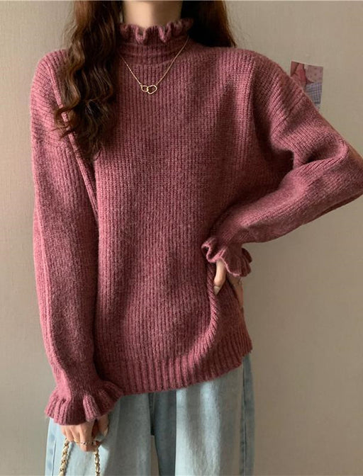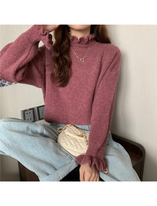 襟部分のシャーリングが特徴的なハイネックインナー。<br>襟と袖口には同色のレースをあしらい、上品なアクセントをプラス。<br>ギャザーネックはほどよい透け感があり、女性らしい印象に仕上げています。