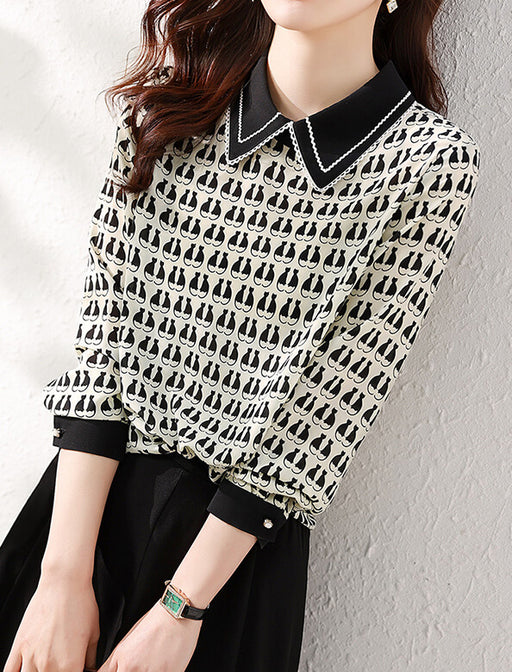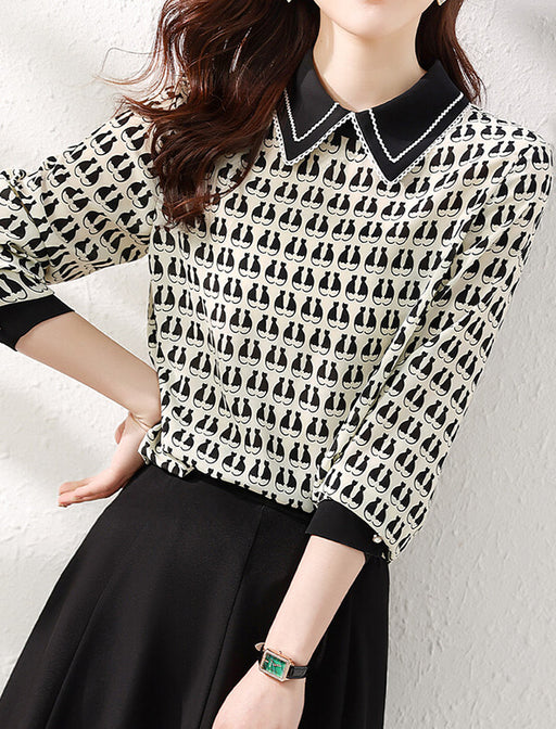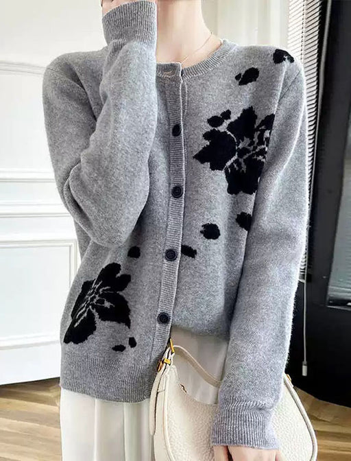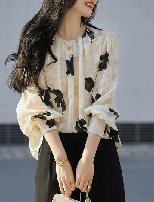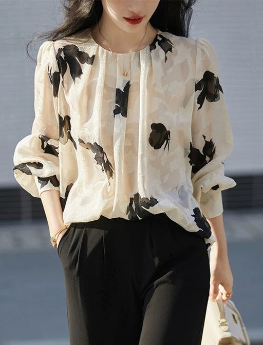 モノトーンのフラワープリントがアクセントとなったブラウス。落ち着いた色調でありながら、女性らしい印象を引き立てるデザインです。どんなボトムスとも合わせやすく、着回し力抜群の一着です。