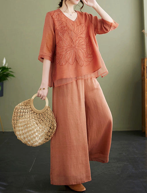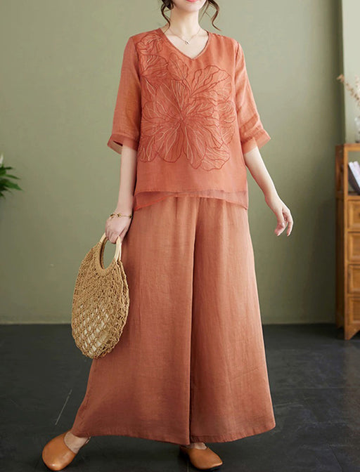ナチュラルな風合いが魅力のリネンライクイージーワイドパンツ。<br>しっかりとボリュームのあるワイドシルエットが特徴で、リラックス感のある大人のスタイルを演出します。<br>カジュアルからきれいめまで幅広いコーディネートに対応できる万能アイテムです。