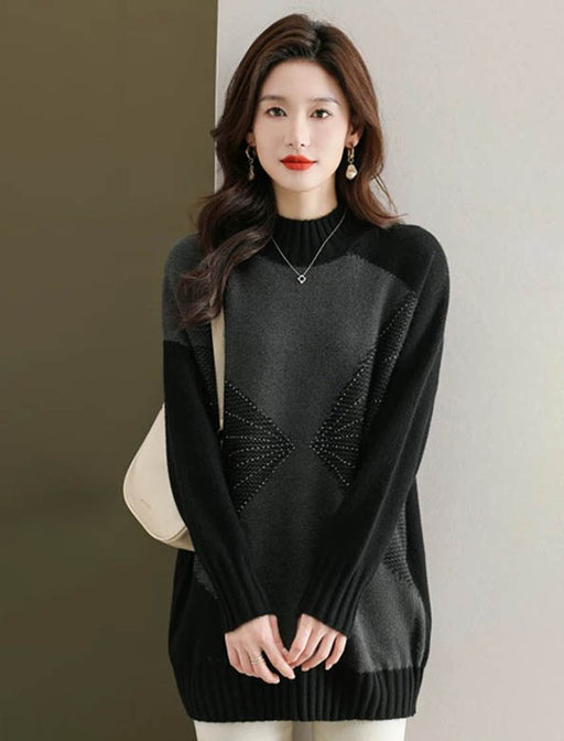 前後2WAYで着られるニット。 配色のリンキングとセンターラインがメリハリのある印象に。 袖にボリュームがありゆったりと着られるシルエット。