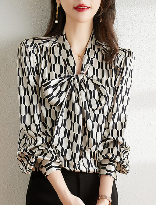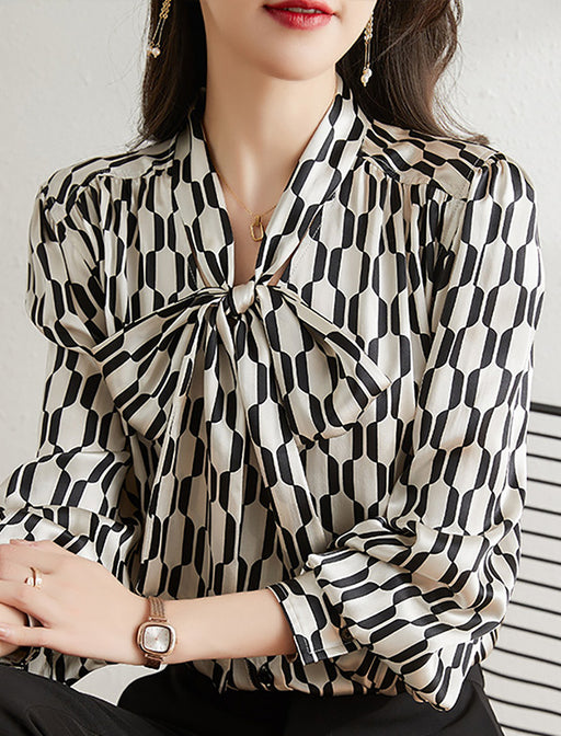 ロープモチーフが描く艶やかな柄と、エレガントなリボンタイ。結び方で印象を調整できるので、ボウを大きく華やかに、または控えめにあしらってシーンに応じた表情を。フォーマルな席やディナー約束でも、洗練された装いが一際目を惹きます。