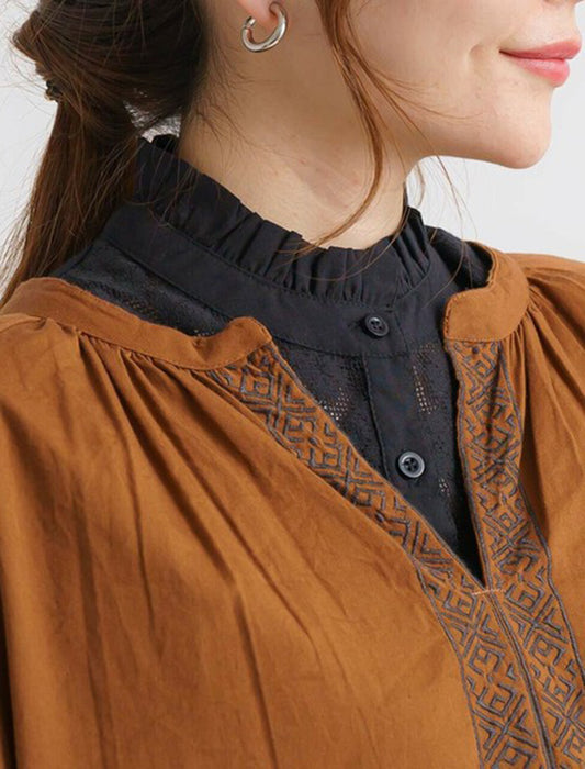 ネックラインにフリル切り替えを施した、華やかな花柄刺繍の付け襟。
