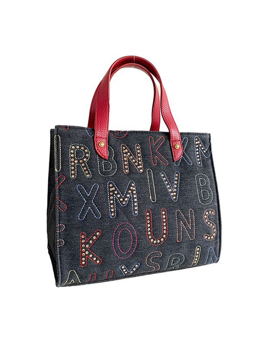 岡山産の上質なデニムを使用した、丈夫で風合い豊かなトートバッグ。<br>荷物の量に応じて形を変えられる、便利な2WAY仕様。<br>赤の差し色がアクセントになり、カジュアルコーデに映えます。