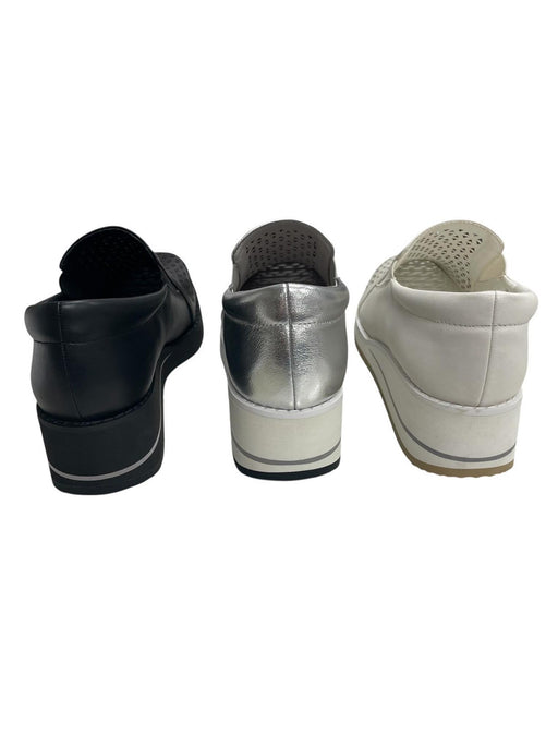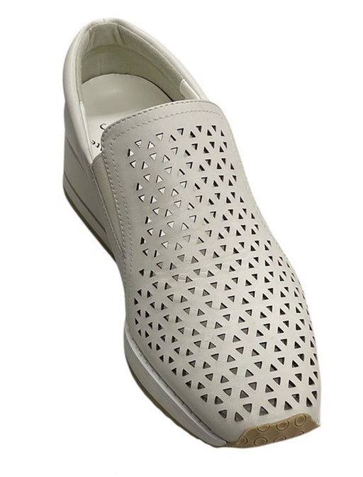 繊細なパンチング加工が、足元に抜け感と涼やかな表情をプラスする一足。 ボリュームのあるプラットフォームソールながら、緻密なパンチングデザインが軽快な印象を与え、重たさを感じさせません。 スリッポンならではの着脱のしやすさと、クッション性に優れたソールで、長時間のお出かけも快適。