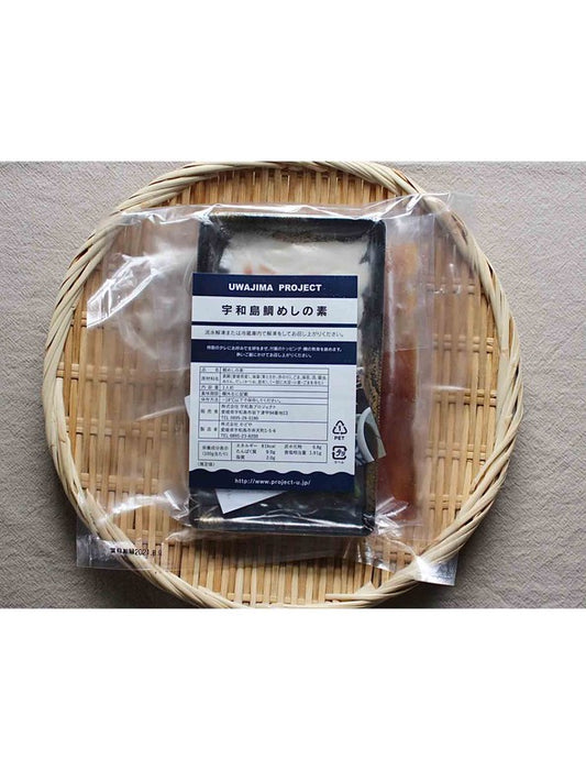 愛媛県の南部、南予(なんよ)と呼ばれる地域にある宇和島市。自然の宝庫「宇和海」はリアス式海岸が続き、気候がとても穏やか。鯛の養殖が盛んで、山々では柑橘が実ります。そんな宇和島の海で育まれた「真鯛」を使用した宇和島プロジェクトと地元の名店「かどや」の共同開発商品です。お届けまで時間がかかる理由は注文が入ってから1点1点丁寧に作っているから!魚好きの方はもちろん、苦手な方も臭みが少なく、美味しく召し上がれます。贅沢な鯛めしが簡単にご自宅で簡単に楽しめます。真空パックのまま流水解凍して、パックからだしたらすぐに食べられます。大きめにカットされた「真鯛」を炊き立てのご飯と特製ダレでお楽しみください。