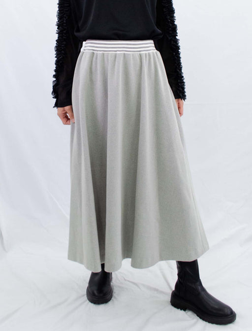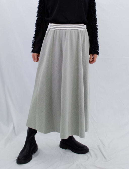 スポーティなアクセントを、フレアラインでさらりと女性らしく。 ウエスト部分に効かせたボーダー柄がスパイスとなり、トップスとのバランスも抜群。 柔らかく肌触りのいい素材で、ほどよくリラックスした着心地をもたらします。