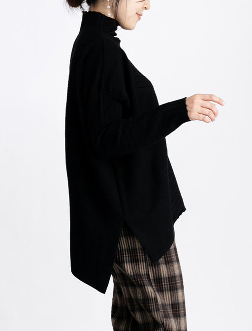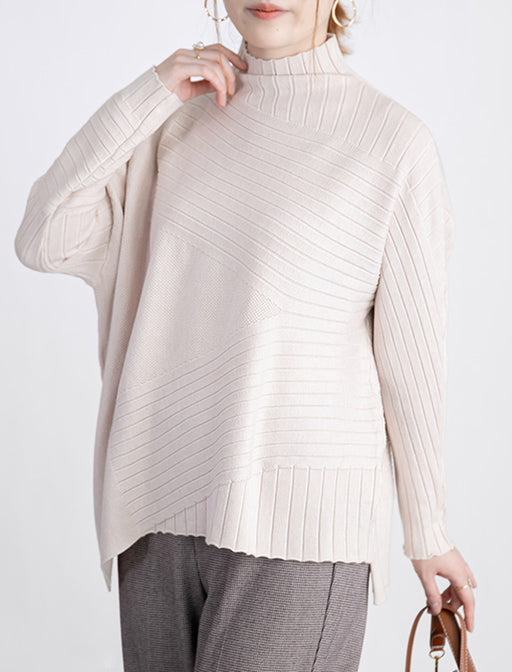 オフタートルとアシンメトリーデザインがポイントのチュニック丈ワンピース。 首まわりをやわらかく見せつつ、動きのある裾ラインでさりげなくおしゃれを演出。 レギンスやパンツとの重ね着も楽しめ、デイリーからお出かけまで活躍する一枚です。