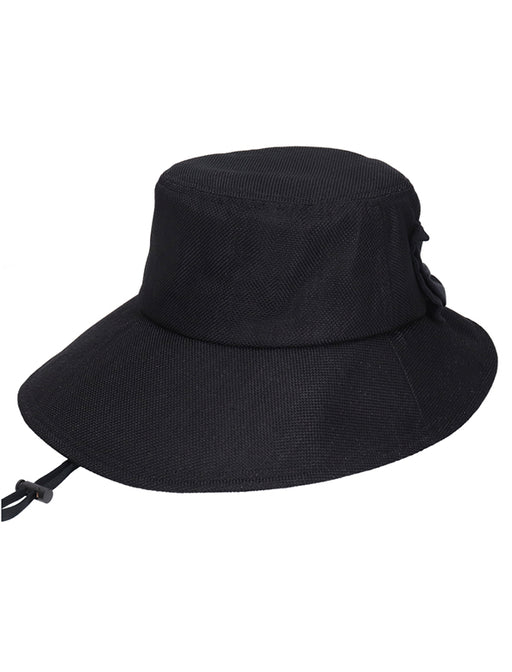 つば広デザインで顔まわりや首の後ろまでしっかり紫外線対策。<br>UVカット機能付きで夏のお出かけにぴったり。<br>スナップボタン付きで折りたたんで収納でき、持ち運びもにも便利です。