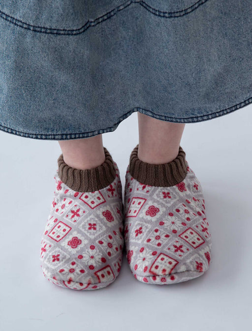 靴下のように軽やかに履けて、スリッパよりあたたかいルームシューズ。 内側はふんわりボア仕様で、足元をやさしく包み込みます。 履き口は伸縮性のあるリブニットで脱ぎ履きも簡単。 ご家族やご友人へのプレゼントにも最適な、人気のあったかアイテムです。