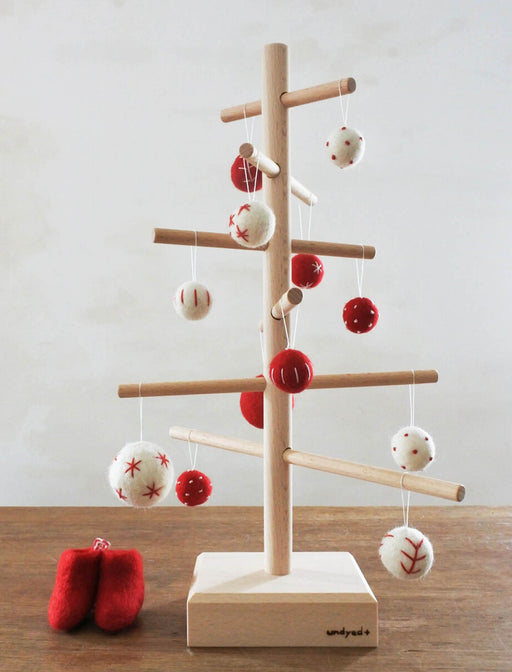 シンプルで温かみのある、木製の組み立て式クリスマスツリーセット。 それぞれに、ふんわりフェルト玉のオーナメントと、小さなフェルトブーツ付き。 模様はすべて手刺繍で、ひとつずつ少しずつ表情が異なり、手作りならではの温もりが感じられます。 北欧テイストのシンプルなデザインは、大切なご友人やご家族...