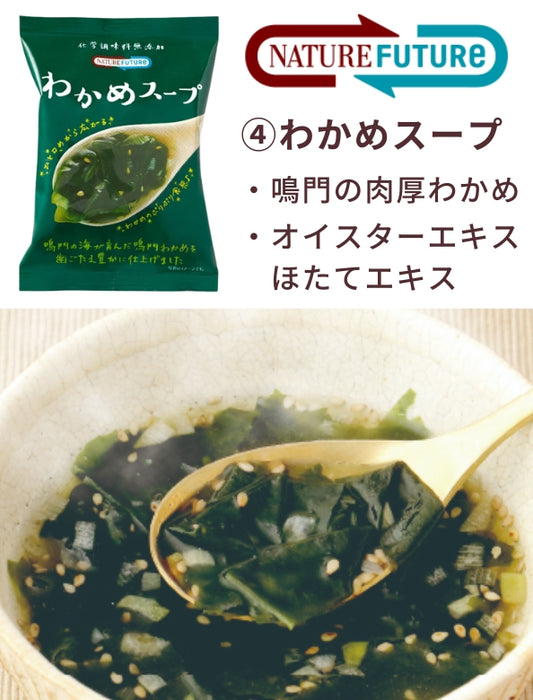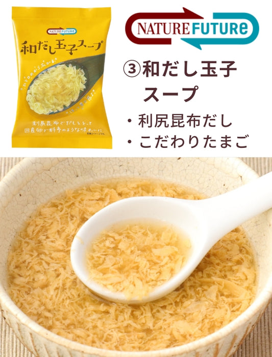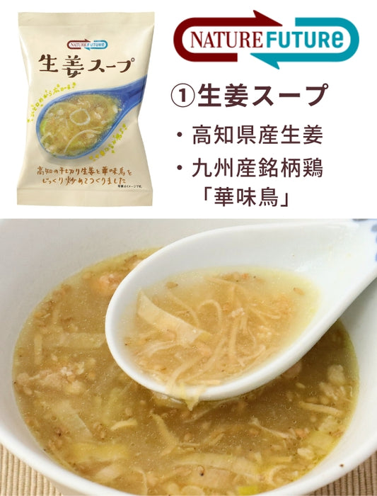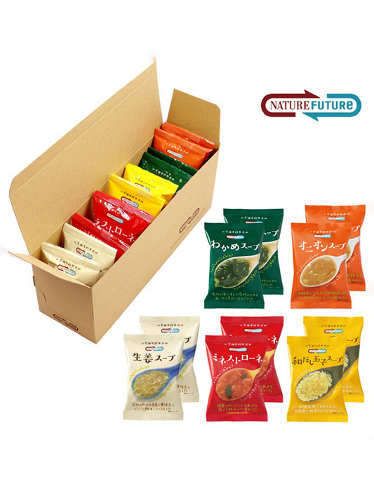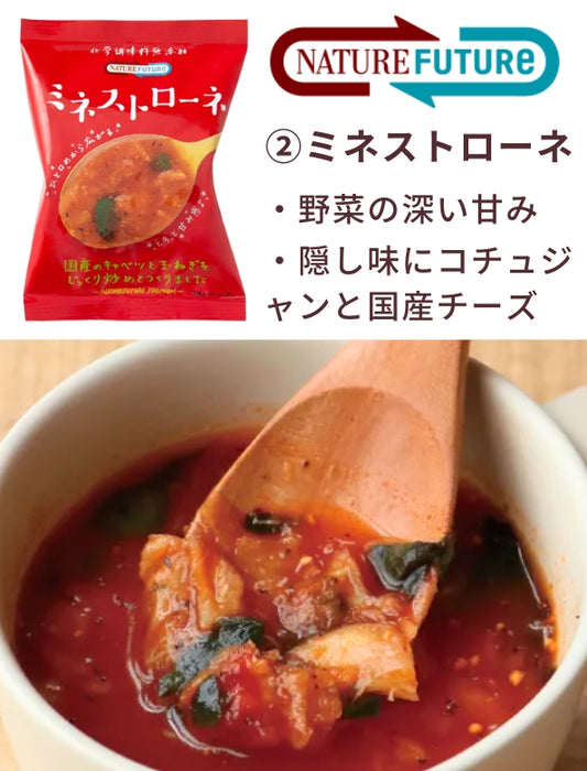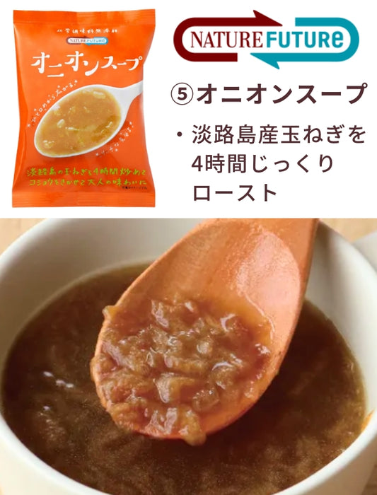 商品内容:生姜スープ、ミネストローネ、和だし玉子スープ、わかめスープ、オニオンスープ、各2食(計10食)