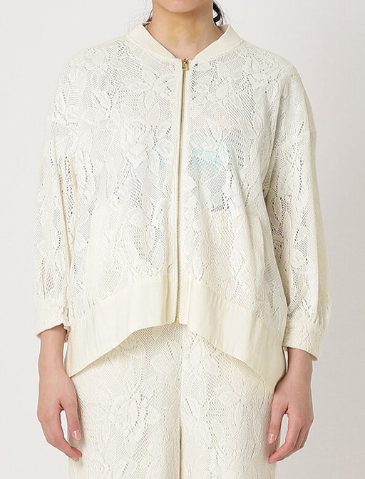繊細な柄の総レースが上品な印象を与えるジップブルゾン。<br>軽やかな素材感で、さっと羽織るだけで華やかなスタイルに。<br>カジュアルからきれいめまで幅広いコーディネートにマッチします。