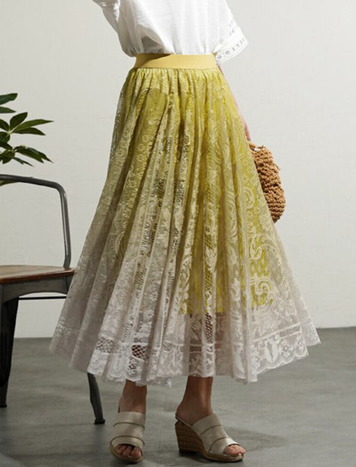 グラデーションパネル柄レーススカートは、贅沢なレースが織りなす美しいグラデーションが魅力。軽やかな素材感とフレアデザインで、歩くたびにふんわりと揺れ、華やかさを演出します。日常やパーティー、フォーマルにも映える一枚です。