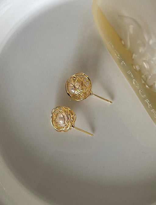 上品な光沢とエレガントなデザインが魅力のドロップパールピアス。<br>ニ連の美しいパールが揺れることで耳元に華やかな輝きを添え、ゴールドが大人な印象です。<br>日常使いから特別な場面まで幅広く活躍し、あらゆるスタイルに調和します。