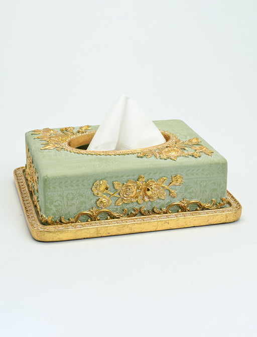 繊細なフレンチレースに、ゴールドの糸を織り込んだ、優雅なティッシュBOXカバーです。 生活感が出やすいティッシュBOXが、まるで美術品のような存在感に変わります。 特別なゲストを迎えるリビングや、ドレッサーの上など、空間の主役となる場所にぜひ。