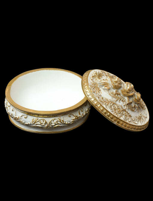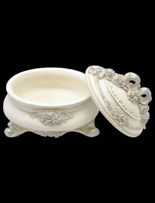 日常を優雅に縁取る、アンティークな佇まいのオーバルケース。 地面から少し浮き上がることで、圧迫感を抑え、軽やかで洗練された印象に。 ドレッサーでのジュエリー入れとしてはもちろん、玄関でのキートレイや、お香立ての受け皿としても。
