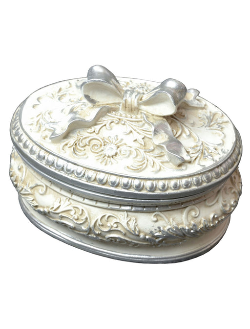 オーバルの曲線美と、フランスのアンティークな趣を感じさせるシルバーの小物入れ。なだらかなオーバル(楕円)のフォルムは、直線にはない柔和さと気品を兼ね備えています。繊細な彫り込みに落ちる影、そしてシルバー特有の静かな輝きは、置くだけでその場の空気を凛と整えてくれるはず。