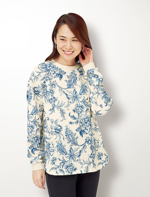 色柄センスで着映える、モダンな日本製カットソー。 鮮やかな発色が魅力の多彩なプリントチュニック。 なめらかな落ち感のカットソーがボディーラインをエレガントにカバーしてくれます。