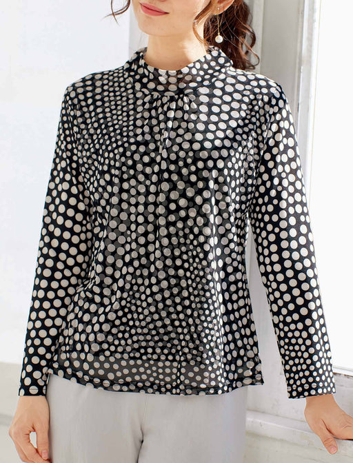 心ときめく「華」のある服。 ほのかな透け感とシボ感のある生地に、フロッキープリントのドット柄が可愛らしい雰囲気。 お揃いのシアースカートと合わせれば、より上品に、より都会的に旬のコーディネートが完成。