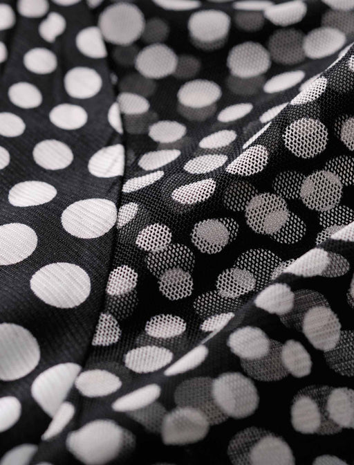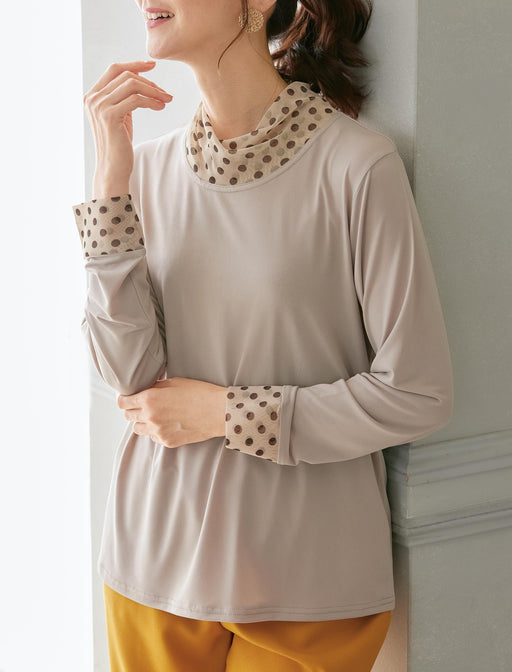 同柄チュールを前身頃に重ねた、モダンなドットプルオーバー。 ベールをかけたような「奥行き」と「柔らかさ」が、着る人の表情まで優しく見せてくれます。 春風に揺れる軽やかな質感は、これからの季節のお出かけにぴったりです。