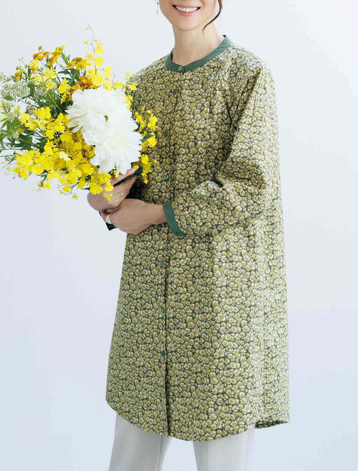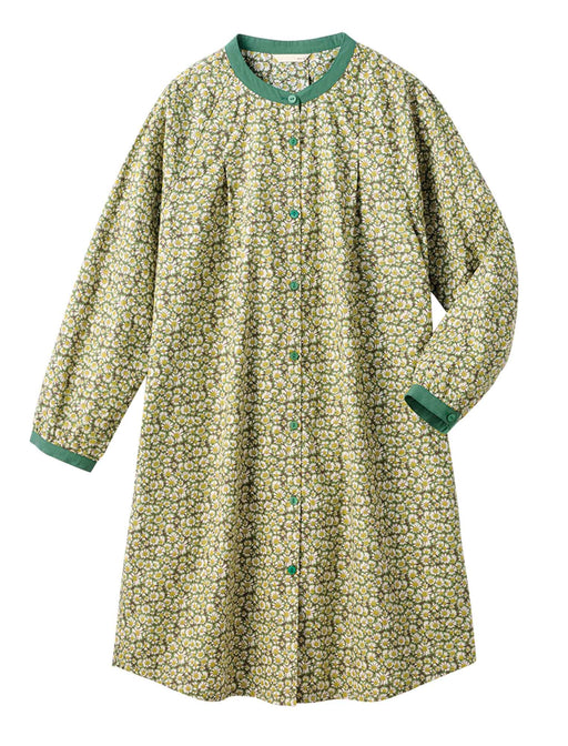 清々しく香り立つような、可憐な花たちに包まれて。 一面に咲いた野菊のような小花柄プリントが綺麗なワンピース。 前後でタックが広がるゆったりしたやさしいシルエットに、襟元と袖口のグリーンがメリハリをメイク。 ラウンドの裾ラインにもおしゃれ感を効かせました。