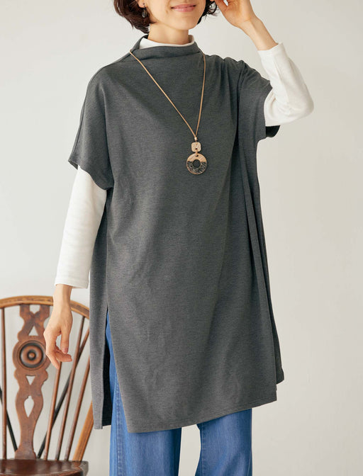 深く入ったサイドスリットが、定番のチュニックをドラマチックにアップデート。 ヒップラインを隠す安心の着丈ながら、スリットの効果で視線が縦に抜け、驚くほどスッキリとしたシルエットに。 ワイドパンツやプリーツスカートと合わせれば、レイヤードの奥行きを楽しめる、大人のための一着です。