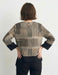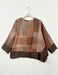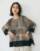 幾何学的なチェック柄と裾のバイカラーが目を引く一着。