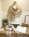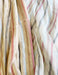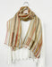 光沢感のあるシアー素材に、繊細なマルチストライプが映える上品なストール。