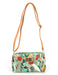 華やかな総柄が目を引く、ポリエステル製の軽量ミニショルダー。
