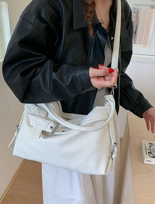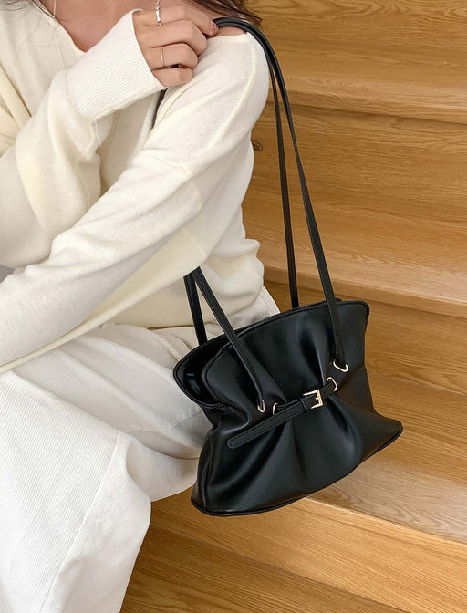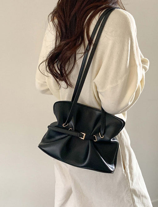 柔らかな質感とギャザーが生み出す、程よい抜け感が魅力。 ベルトデザインが上品なアクセントになり、オンオフ問わず活躍します。 肩掛けしやすい長めのストラップで、デイリーコーデを旬な装いに格上げ。