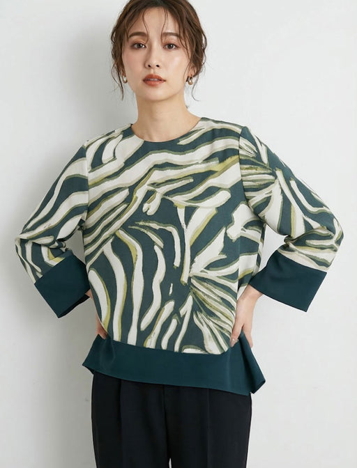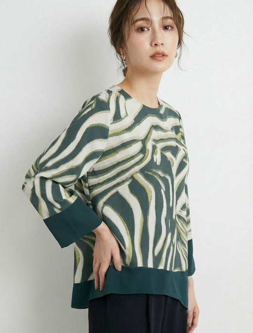 流れるようなアニマル柄が目を引く、モードな主役級トップス。 裾のバイカラー切り替えとアシンメトリーなラインが、ゆったりシルエットにメリハリを添えます。 一枚で洗練された大人カジュアルが完成する一着です。