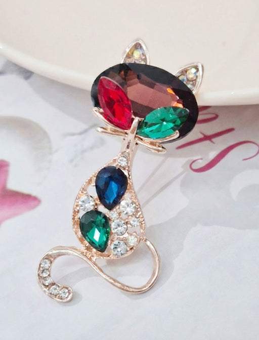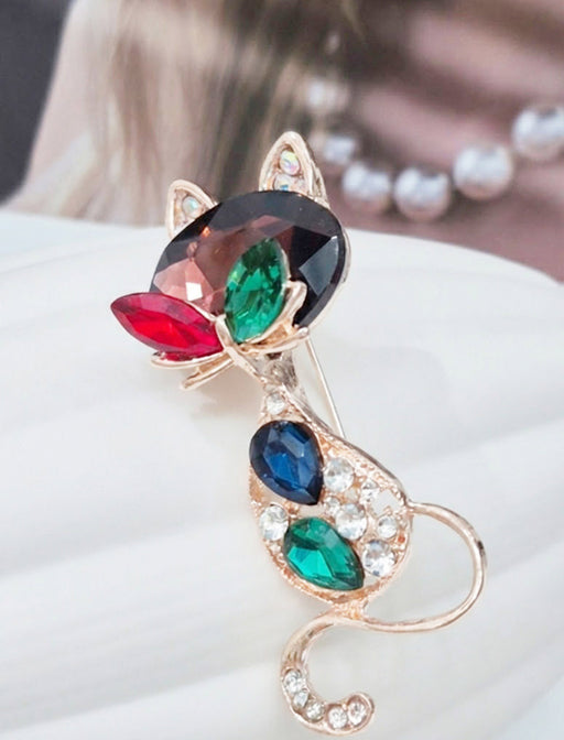 煌めくビジューを贅沢にあしらった、愛らしい猫モチーフのブローチ。 大粒のクリスタルが胸元で華やかに輝き、シンプルな装いに大人の遊び心を添えてくれます。 ギフトや自分へのご褒美にも最適な一品です。