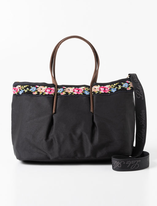 身軽にお出かけしたい日にぴったり! ナイロン素材で軽く、マチもしっかりあるので見た目以上の収納力です。 上品な花柄のアクセントが、シンプルなコーディネートをぐっと華やかに格上げしてくれます。