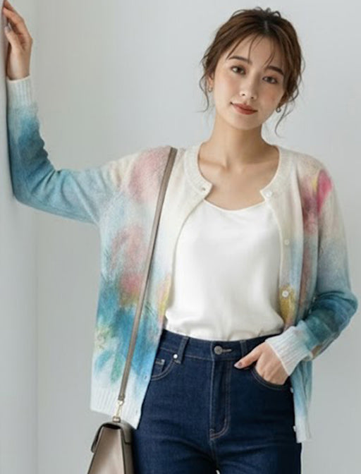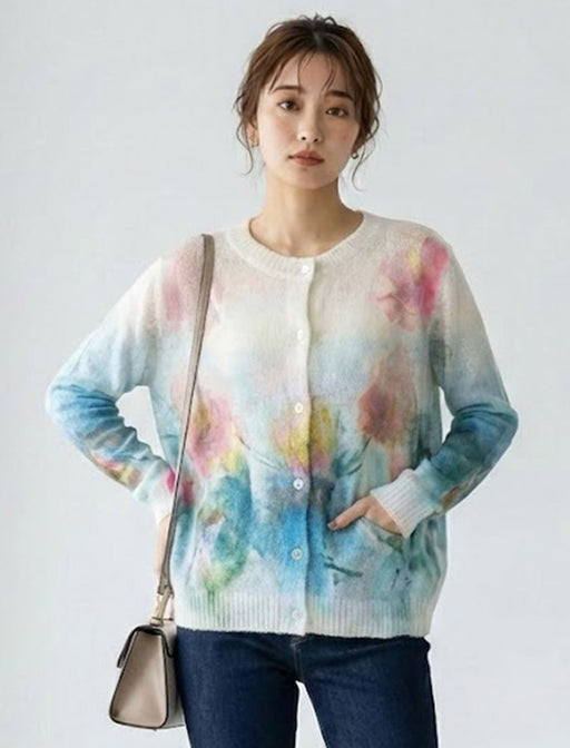 絵画のようなグラフィックが目を惹く、透け感ニットカーディガン。 軽やかなシアー素材が旬な表情を演出します。 羽織るだけでニュアンス感たっぷり。 冷房対策や日差し除け、コーデの主役として長く重宝する一枚です。