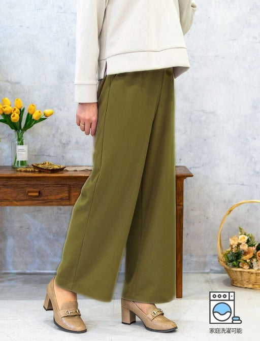 落ち感のあるワイドパンツです。 軽くてやわらかいライトジョーゼット素材。 しわになりにくく、家庭洗濯もできる取り扱い簡単。 暑い季節でも涼しくストレスフリーな着心地をお楽しみいただけます。