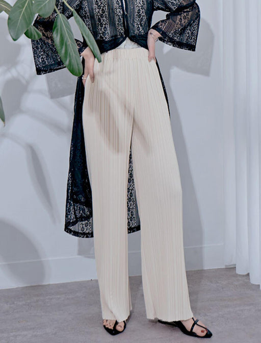 軽やかに揺れるプリーツが上品な印象を醸し出します。 柔らかい素材とウエストゴムでストレスフリーな着心地♪ カジュアルにもキレイめにも使える万能アイテムです。 立体的なプリーツで脚長効果&細見え◎