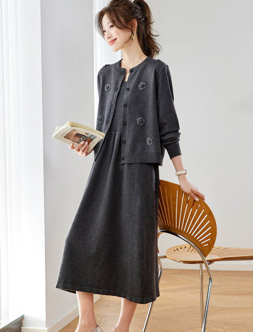 流れるようなAラインのワンピと、羽織りのバランスが絶妙な贅沢セット。 コンパクトな丈感が重心を上げ、スッキリした存在感を表現します。 セットで理想のスタイルが完成し、単品でも着回せる万能さが魅力。 日常からお出かけまで、大人の余裕を漂わせる一着です。
