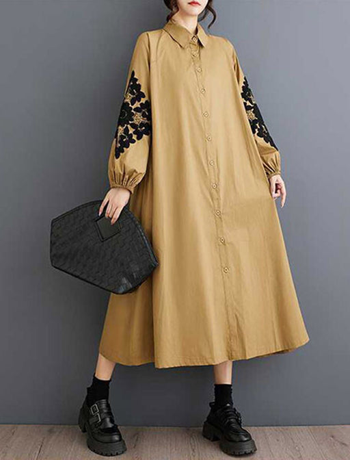 モードな印象のAラインシルエットシャツワンピース。 袖のプリント柄がさりげないアクセントになり、シンプルになりすぎずおしゃれに決まります。 ゆったりシルエットで体型カバーも叶え、デイリーからお出かけまで幅広く活躍する一枚です。