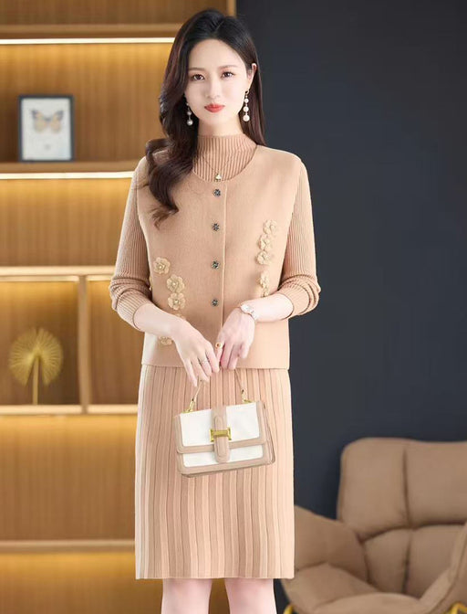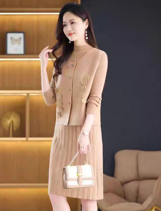 繊細なフラワー刺繍が華やぎを添えるカーディガンと、着心地のよいロングスカートのセットアップ。 重ね着でさっと華やかに、1枚でも上品に決まるので、季節のイベントやお出かけシーンにぴったり。 女性らしい柔らかなラインと軽やかな素材感で、見た目も着心地も心地よい一着です。