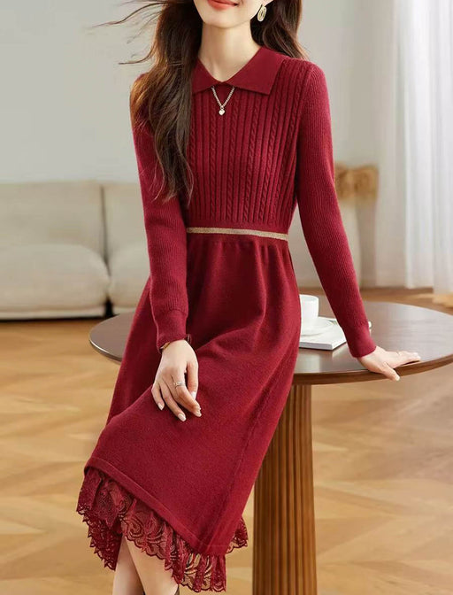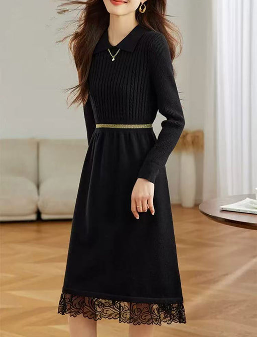 柔らかなニットと繊細なレースの切り替えが織りなす、フェミニンで上品なワンピース。 きちんと感のある襟付きデザインで、お出かけやお呼ばれにも対応できる万能スタイル。 毎日の装いに、ちょっとした特別感を。あなたのワードローブを、女性らしさとクラス感で満たす一枚です。
