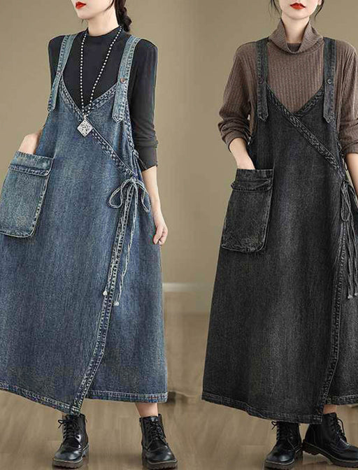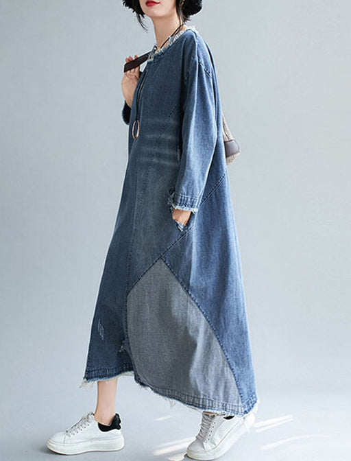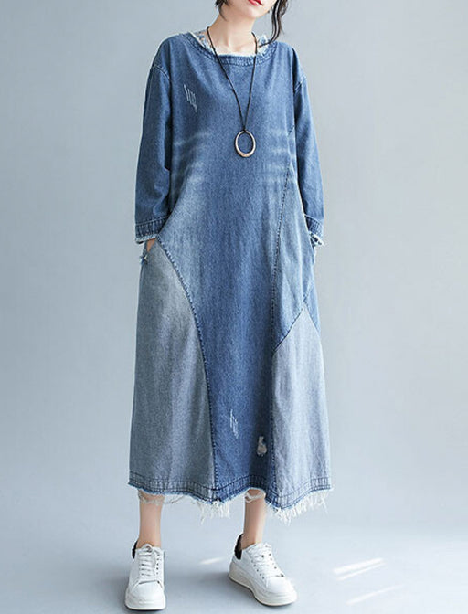 ユーズドライクなカットオフ加工で、リメイクムードを演出したロング丈のデニムワンピース。 切りっぱなし風の裾やデニム生地のパネル切り替えが、まるでリメイクしたようなヴィンテージ感を演出。 アクセサリーをプラスすれば、カジュアルなのに洗練された大人のスタイルの完成。