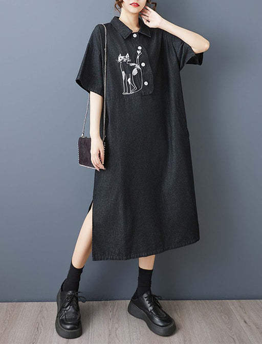 カジュアルでありながら可愛らしさを演出してくれるワンピース。 胸元を飾るネコの刺繍がアクセントとなり、シンプルなデザインに遊び心を加えてくれる一着。 ゆったりとしたシルエットで、着心地の良い肌触りは抜群です◎