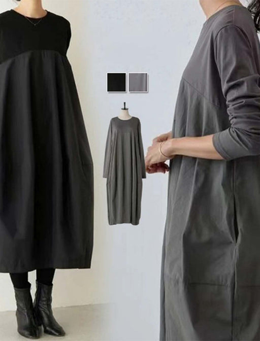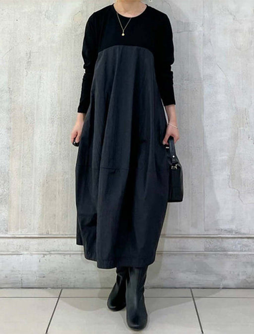 ミックス素材のこなれ感をまとう、万能ワンピース。 胸元の切り替えディテールとコクーンシルエットで、スタイリッシュなコーデが瞬時に完成◎ アクセサリーやブーツを合わせれば、お出かけや旅行にもピッタリの優秀アイテム。