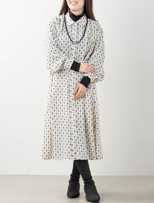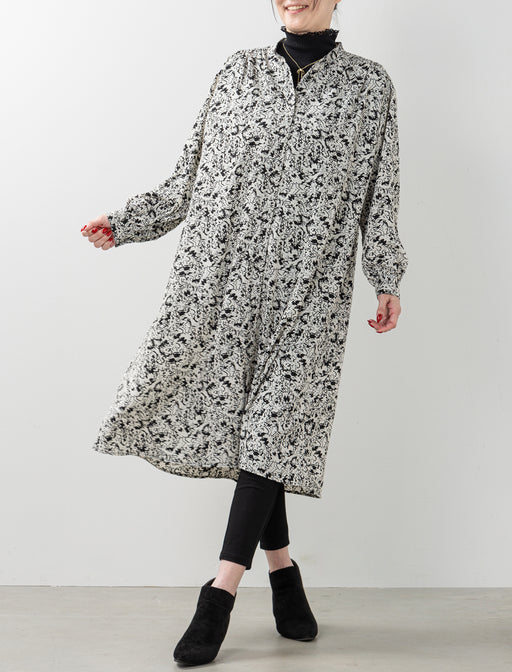 シックな柄と2WAYデザインで、着こなしの幅が広がる。大人のための万能プリントワンピース。 主張しすぎない繊細なモノトーン柄が、カジュアルにもきれいめにもマッチ。 シーズン問わず、大人の女性にふさわしい洗練された印象を与えます。