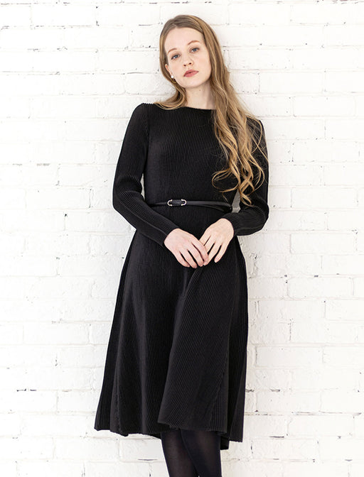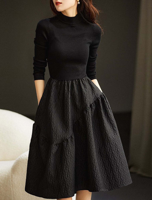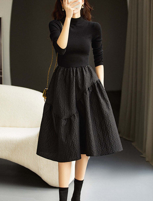 リブ調のハイネックニットと立体感のあるフレアスカートが織りなす、クラシカルなワンピース。 異素材切替のデザインが歩くたびに華やかに揺れ、大人の女性らしさと上品なスタイルアップを叶えます。 秋冬のデイリーコーディネートにぴったりな、上質な一着。