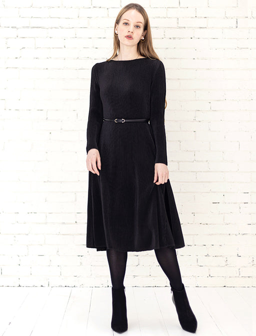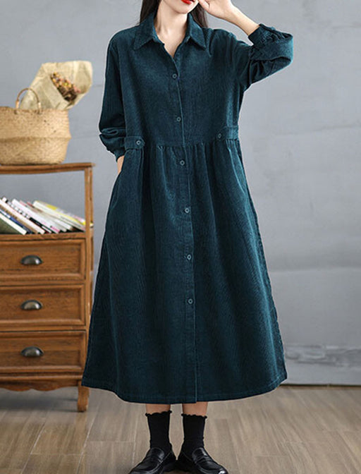 大人の可愛さを引き立てる、レトロクラシックなAラインワンピース。 季節感たっぷりのコーデュロイ生地を使用。見た目にも着心地も暖かく、秋冬のスタイリングに深みを加えます。 裾に向かってふんわりと広がるAラインが、気になる体型をカバーしながら、女性らしい優雅な印象に。