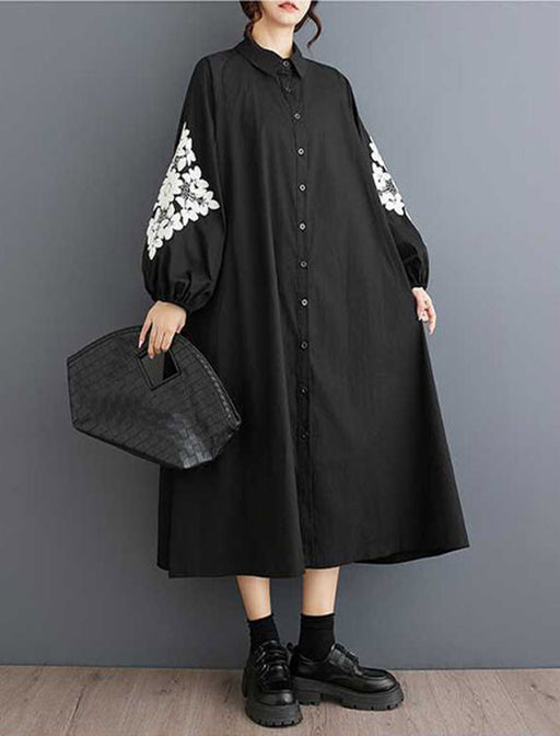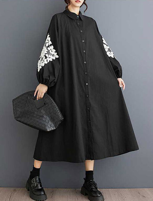 モードな印象のAラインシルエットシャツワンピース。 袖のプリント柄がさりげないアクセントになり、シンプルになりすぎずおしゃれに決まります。 ゆったりシルエットで体型カバーも叶え、デイリーからお出かけまで幅広く活躍する一枚です。