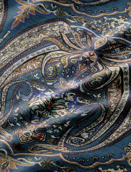 ダマスク柄風の彩りが映える流麗ジャージーワンピース。 落ち感がきれいでシワになりにくいストレッチジャージー素材を使用。 左肩から右腰への切り替えラインに施したギャザーが、綺麗なドレープを生み出します。 ネック部分に配した斜めのボタンがデザインポイントに。